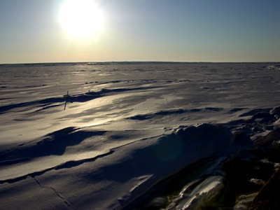 I know this picture doesn’t look like spring, but hey, this is Churchill. It is spring, I know that from the lengthening days, returning birds and warmer weather. How warm is it? Well not what most people would think of as spring. Today was -10C with a windchill this morning that made it feel like -22. However it was a bright blue sky and warm sun that had ice and snow melting this afternoon. In fact, a lot of our snow has melted away in the last couple of weeks in the afternoon sun.