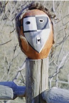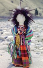 This very unique deck of cards was created by Megan Garcia. The cards themselves are photographs of pieces of multi media sculpture that Megan has created over the years. The materials used are all from nature, anything from gourds, shells, feathers, bark, wood, hide, fur, antlers, wool and other fibers to corn cobs. Each piece is unique and is meant to represent a Grandmother. Some look like people, some like wall decorations and some are quite abstract, all are beautiful in their own way.